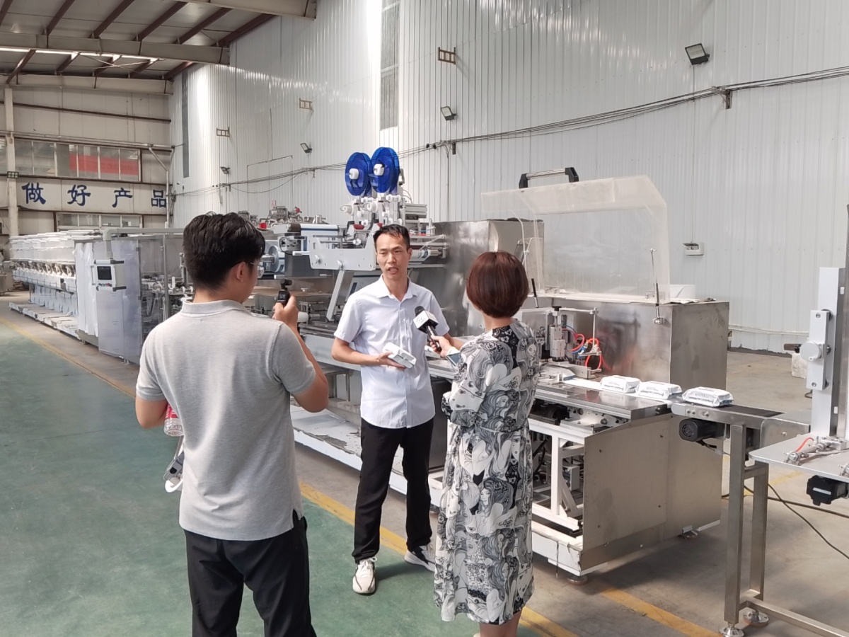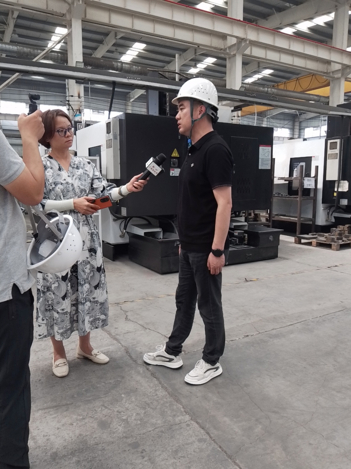 2023年8月9日郑州广播电视台到我司进行企业采访,首先来到的是我们新能源固废环保回收设备车间,项目副总王总介绍了在我们企业入驻过程中的相关情况及企业未来的规划。