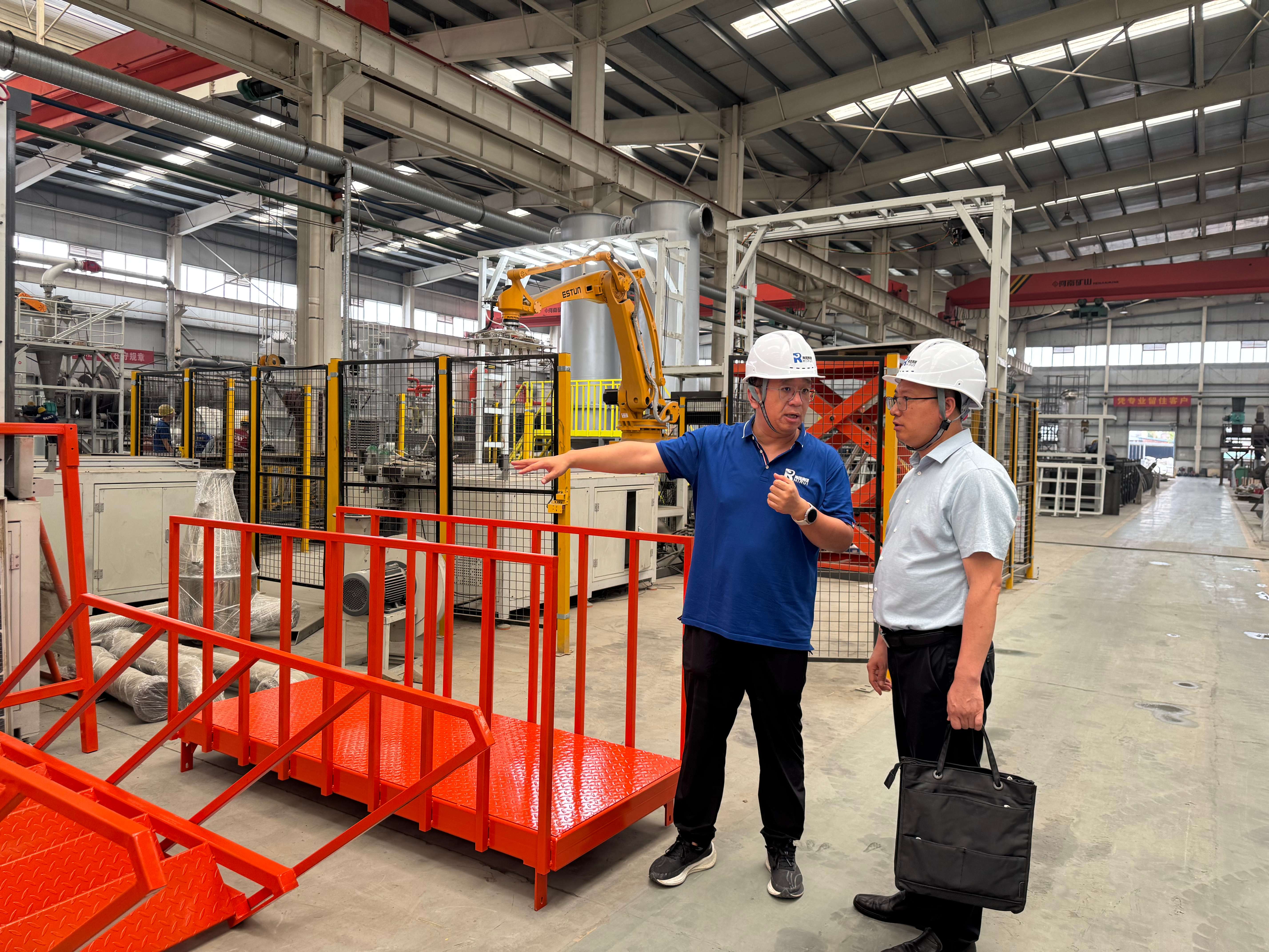 2025年6月19日,郑州铁路技师学院副院长韩邦会、机械系主任曾重光、教学部高老师一行到访海瑞集团参观交流,旨在推动校企合作迈向新高度。海瑞集团人力资源部经理冯超、培训主管杨晓文热情接待,并陪同参观集团核心业务板块,详细介绍企业运营及人才需求。