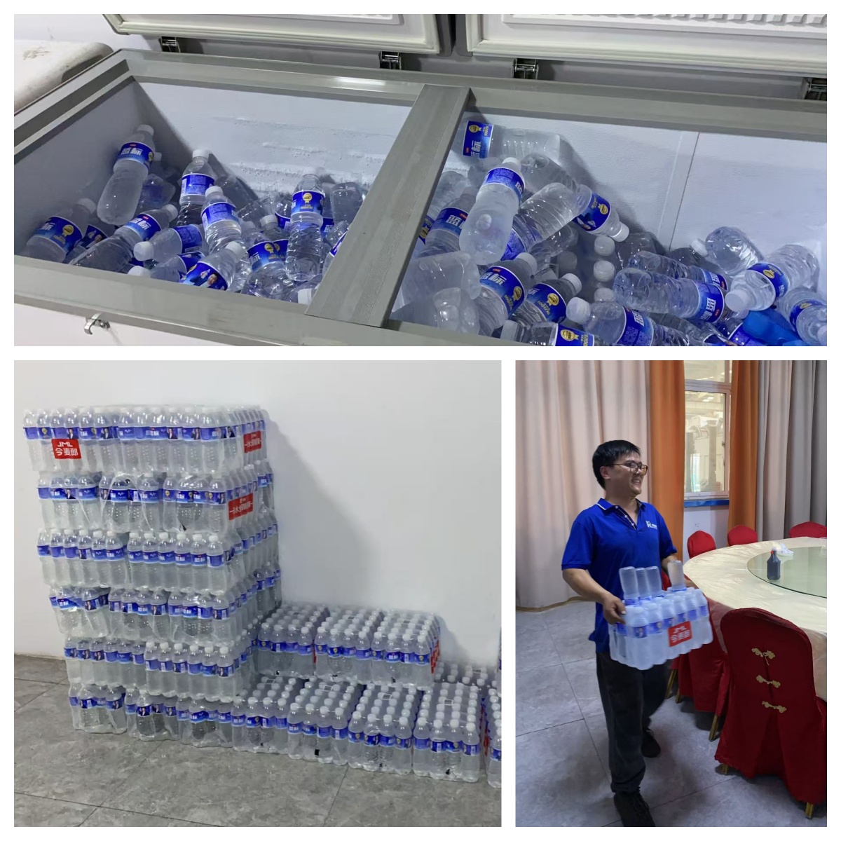 行政部定时为各车间配送大冰块,通过物理降温方式有效改善工作环境温度。同时,冰镇矿泉水每日上下午各发放一次,确保每位同事都能随时补充清凉。