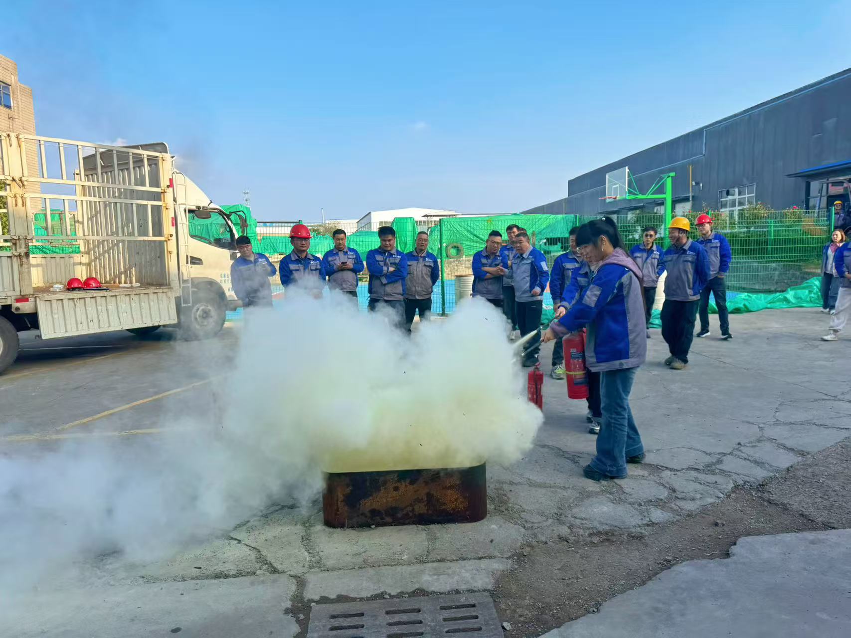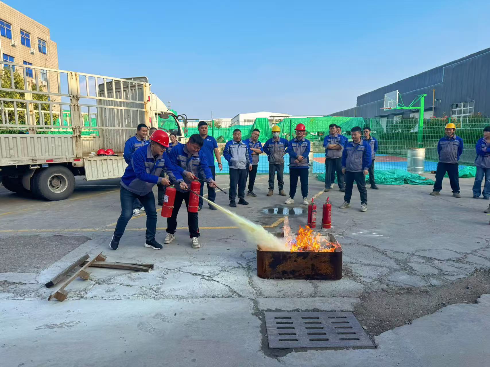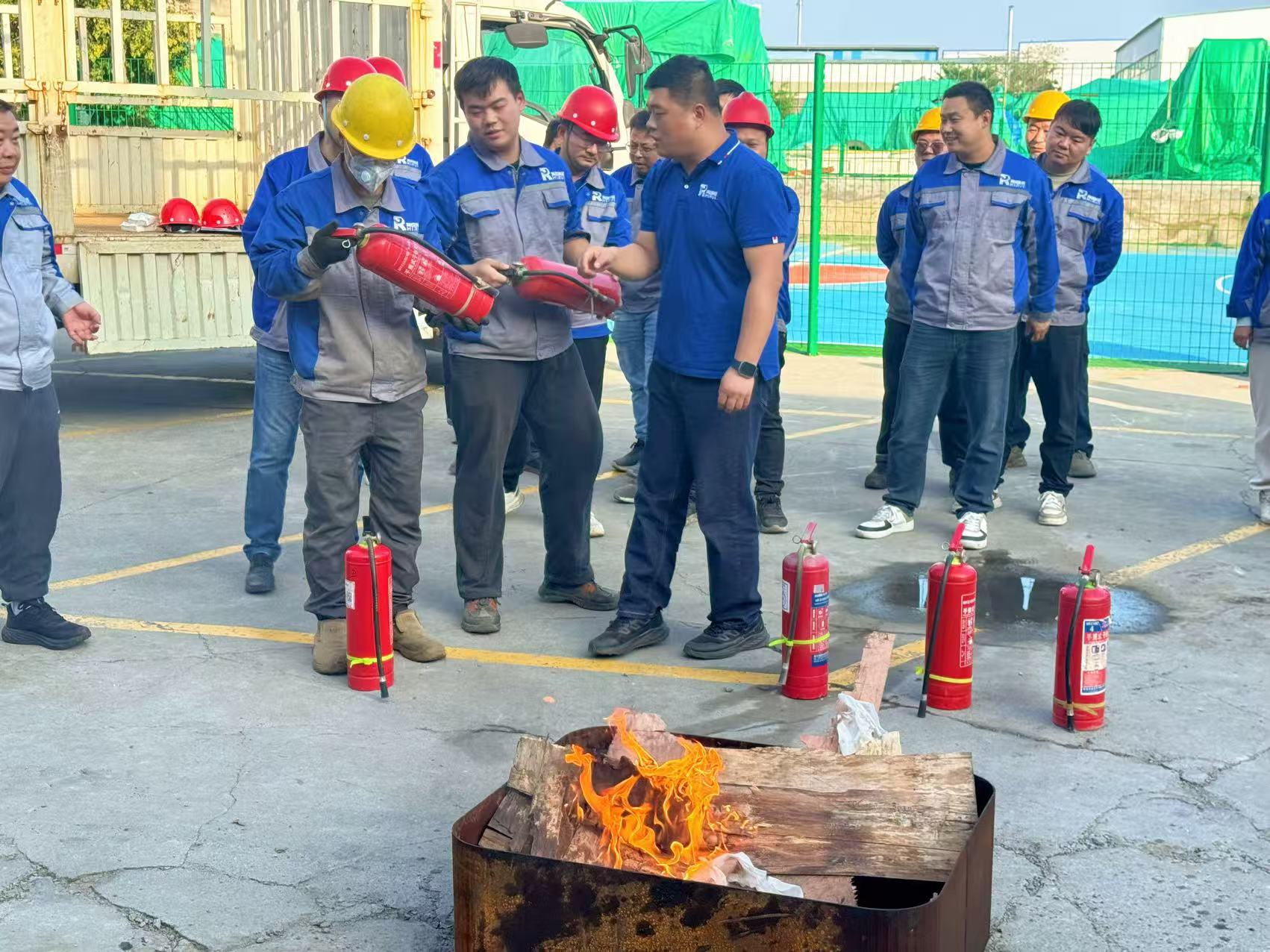 本次演习模拟了真实火场环境,包含了组织机构讲解、应急疏散、灭火器实操等多个环节。在安全管理负责人的专业指导下,同事们认真学习了干粉灭火器的正确使用方法——“提、拔、握、压”,并轮流上场进行了实战灭火演练。大家反应迅速、操作规范,成功将“火情”扑灭在初期阶段。